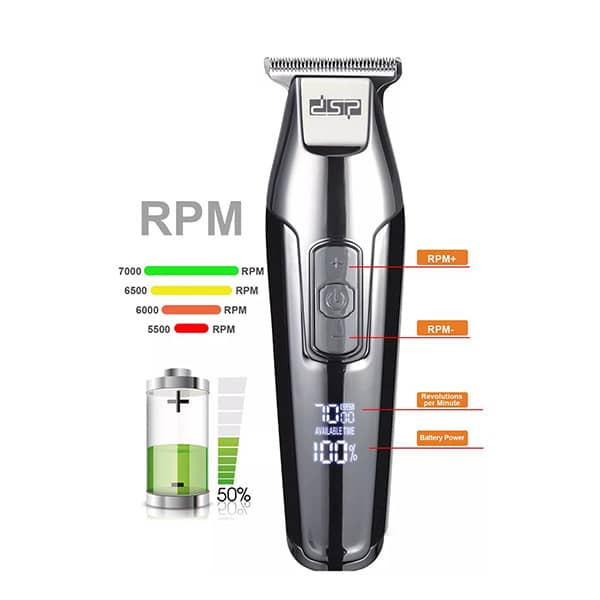 منبع انرژی این ماشین اصلاح باتری لیتیومی قابل شارژ 1400 میلی آمپری است. که در مدت زمان 2.5 ساعت به طور کامل شارژ و پس از آن به مدت 240 دقیقه به صورت مداوم قابل استفاده است. کمپانی بزرگ دی اس پی DSP موتوری که برای این این محصول تعبیه کرده بسیار پر قدرت و کارآمد است. قدرت این موتور از طریق کلیدهای که بر روی بدنه « ماشین اصلاح دی اس پی dsp 7000 » تعبیه شده از 5500 دور در دقیقه تا 7000 دور در دقیقه قابل تنظیم میباشد تا حتی به راحتی تمامی موهای ضخیم را نیز کوتاه و اصلاح بنمایید.